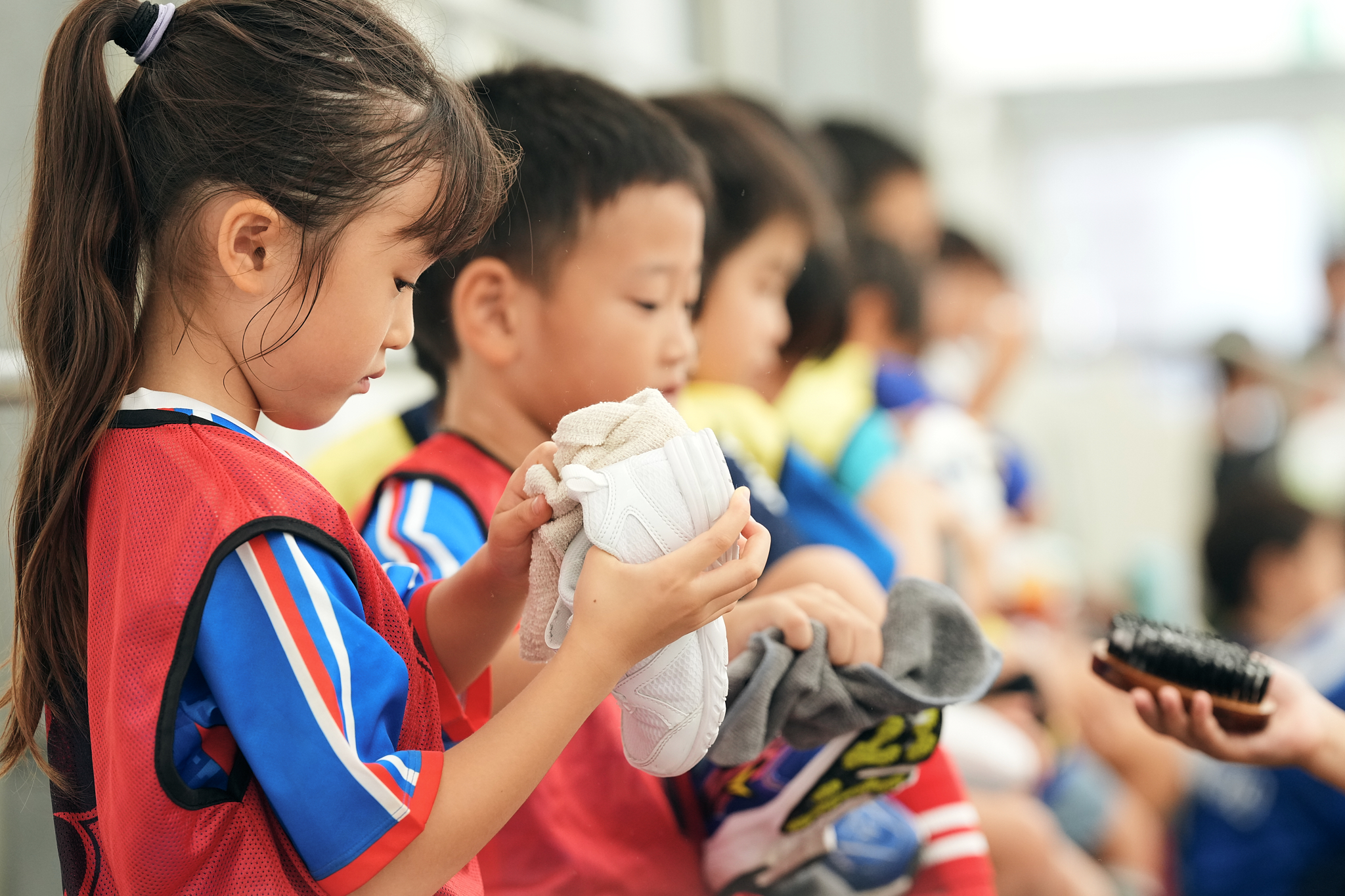 サッカーはもちろんのことシューズケア体験にも真剣に、時折笑顔で取り組んでいる姿が印象的でした。