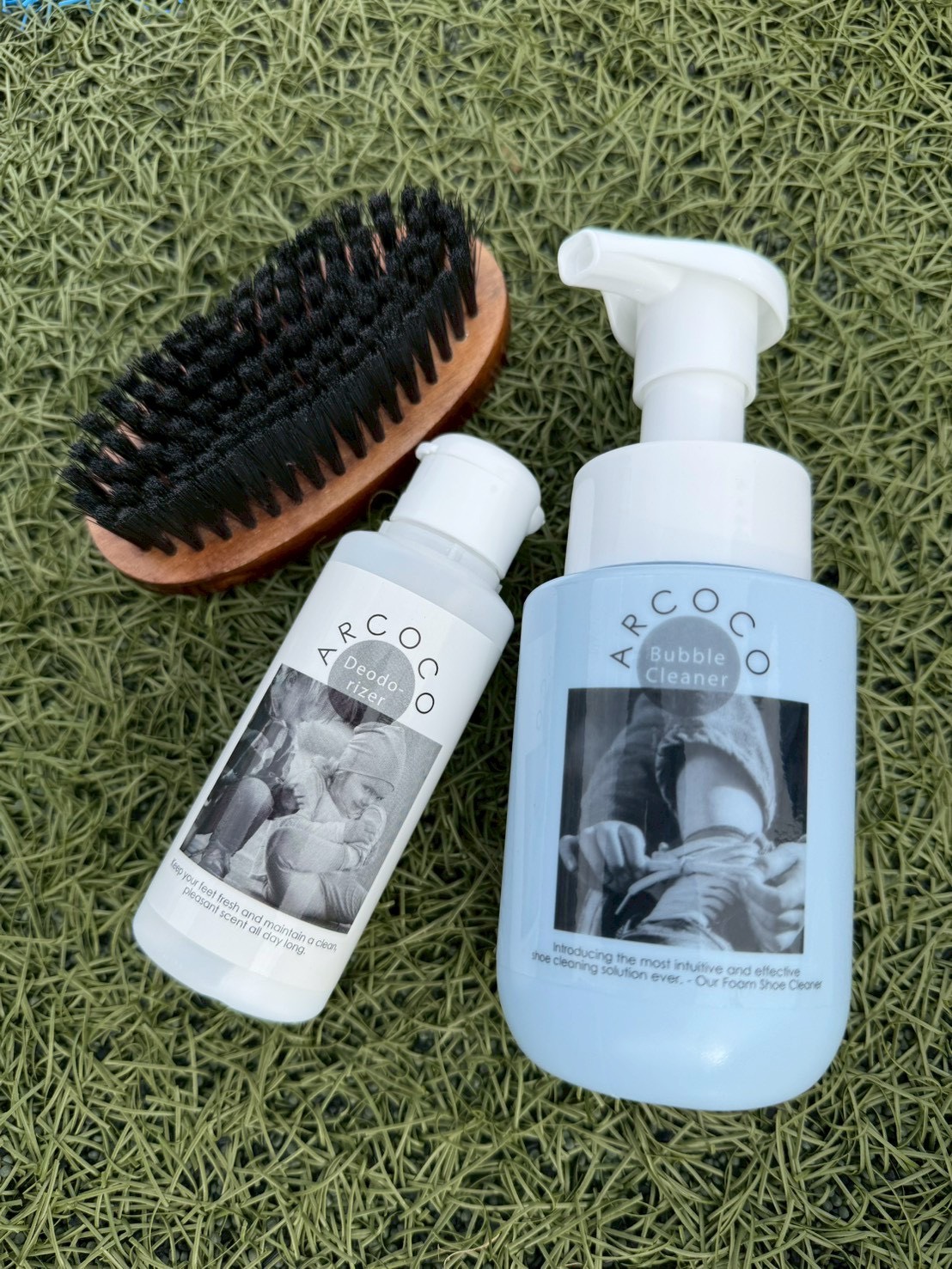 ARCOCOバブルクリーナーは、主に靴の表面を対象としています。靴の内部を洗浄する場合は、十分なすすぎが必要です。